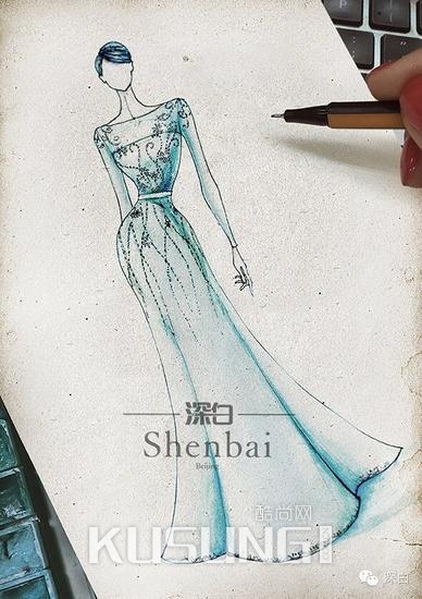 首先,是方案设计。Shenbai(深白)设计师充分结合李思思的需求,经过多次修改比对,呈现出最终版设计效果图;在布料颜色方面,为了表达出梵高画作中神秘而温婉的蓝色神韵,设计师又在20款色卡颜色中经过定染和层层挑选,综合李思思肤色、现场灯光等元素,确定了最终的方案。