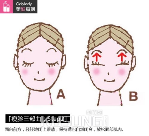 面向前方,轻轻地闭上眼睛,保持嘴巴自然闭合,放松面部肌肉。