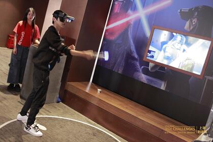 作为多年的星战老粉儿,当看到联想Mirage展区时,整个人都震惊了,游戏还能这么玩? 联想Mirage AR智能头盔套装拥有一个AR增强现实头显、光剑控制器和追踪信标。当戴上智能头戴显示器的那一刻,逼真的画面我简直不敢相信!每次有敌人向我挥砍时,我都会下意识的用光剑控制器做出抵抗动作,担心会伤到自己,而挥舞手中的光剑与敌人进行战斗的时候,感觉自己就是电影中的主角。